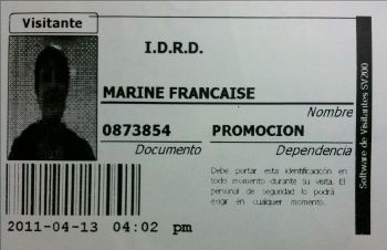 Aujourd'hui c'était du sérieux. A l'entrée, on m'a demandé mes papiers (comme souvent), on m'a dit de me placer devant la webcam et on m'a imprimé une belle étiquette où on me reconnait bien et où mon nom est bien indiqué : Marine FRANCAISE.